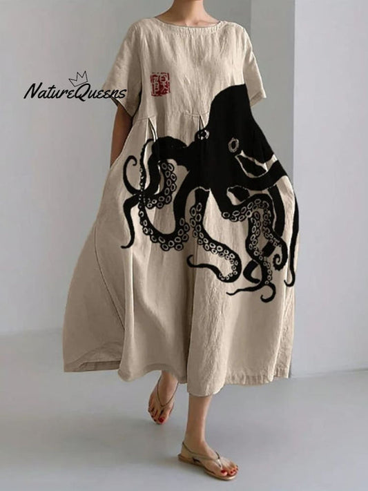 Tabita™ | Vestido informal holgado y elegante con estampado artístico de pulpo vintage para mujer