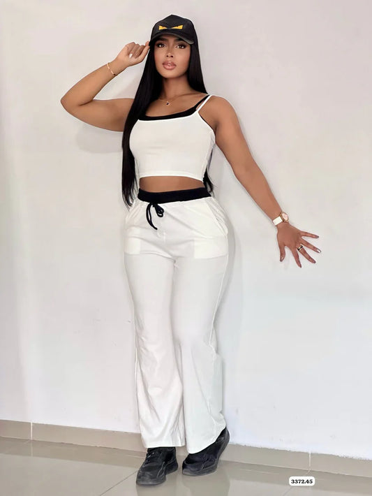 Lola™ | CONJUNTO RIB BLUSA TIRAS CON BLANCO
