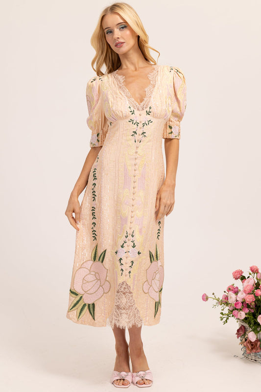 Tala™ | Vestido largo Florence - Estampado de guisantes dulces con encaje lavanda