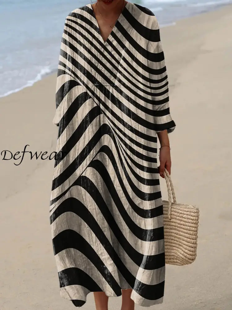 Cataleya™ | Vestido de algodón con estampado artístico de líneas geométricas abstractas