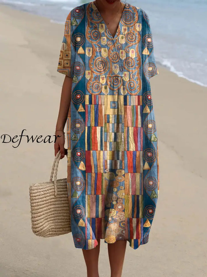 Kim™ | Vestido fluido de algodón con estampado geométrico abstracto