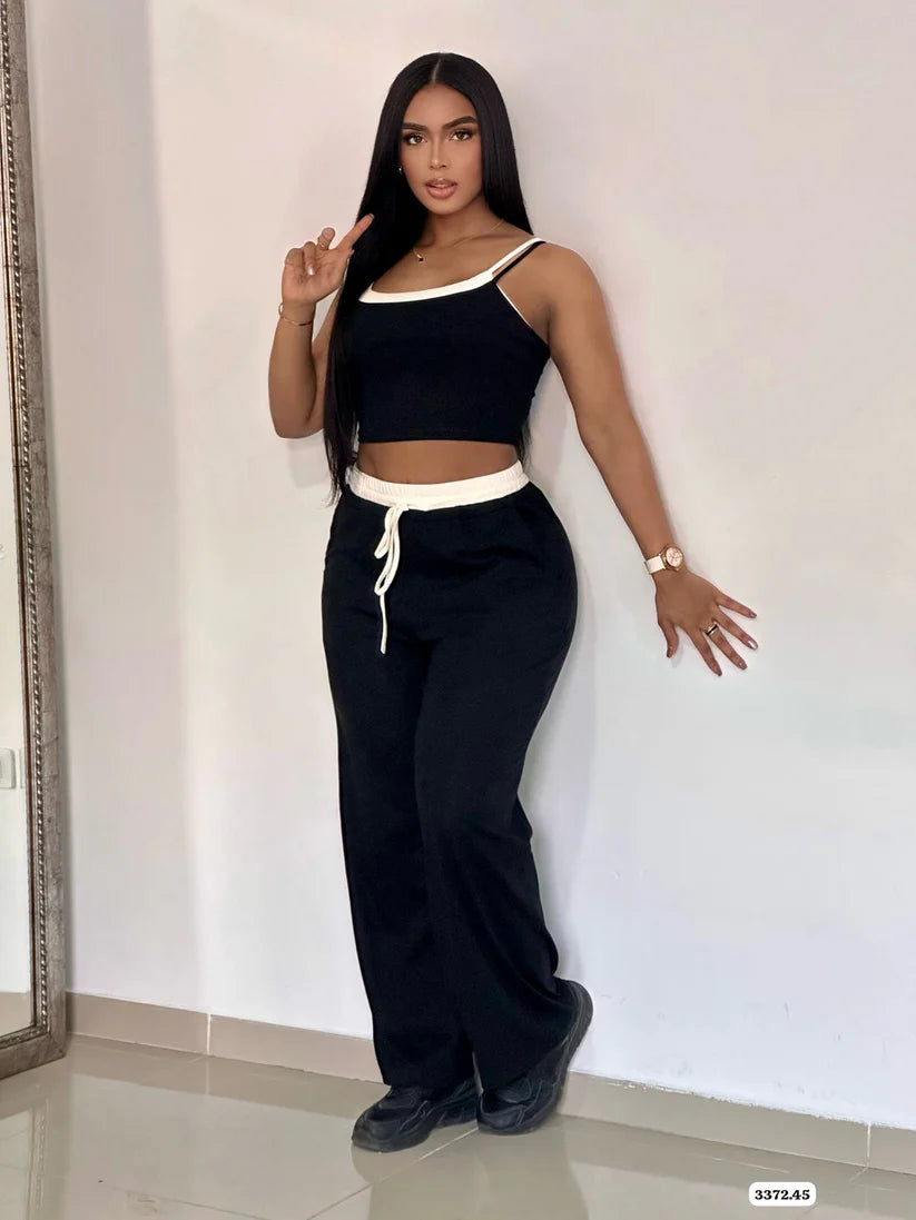 Lola™ | CONJUNTO RIB BLUSA TIRAS CON BLANCO